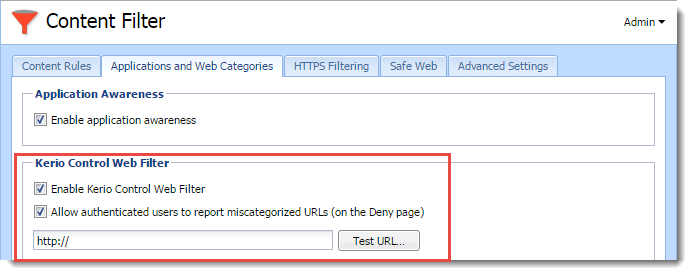Kerio Control Web Filter نیازمند گواهی های خاص است. مگر در مواردی که Kerio Control شامل این واحد است، این به عنوان یک نسخه آزمایشی عمل می کند( به این معنی که به طور خودکار بعد از 30 روز از نصب Kerio Control و گزینه هایی در تب Applications and Web Categories در دسترس نخواهد بود).